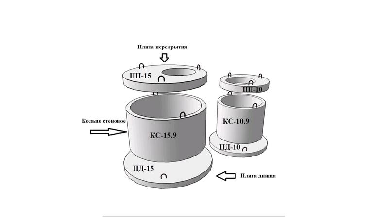 элементы колодцев, как плиты перекрытия и кольца колодцев.